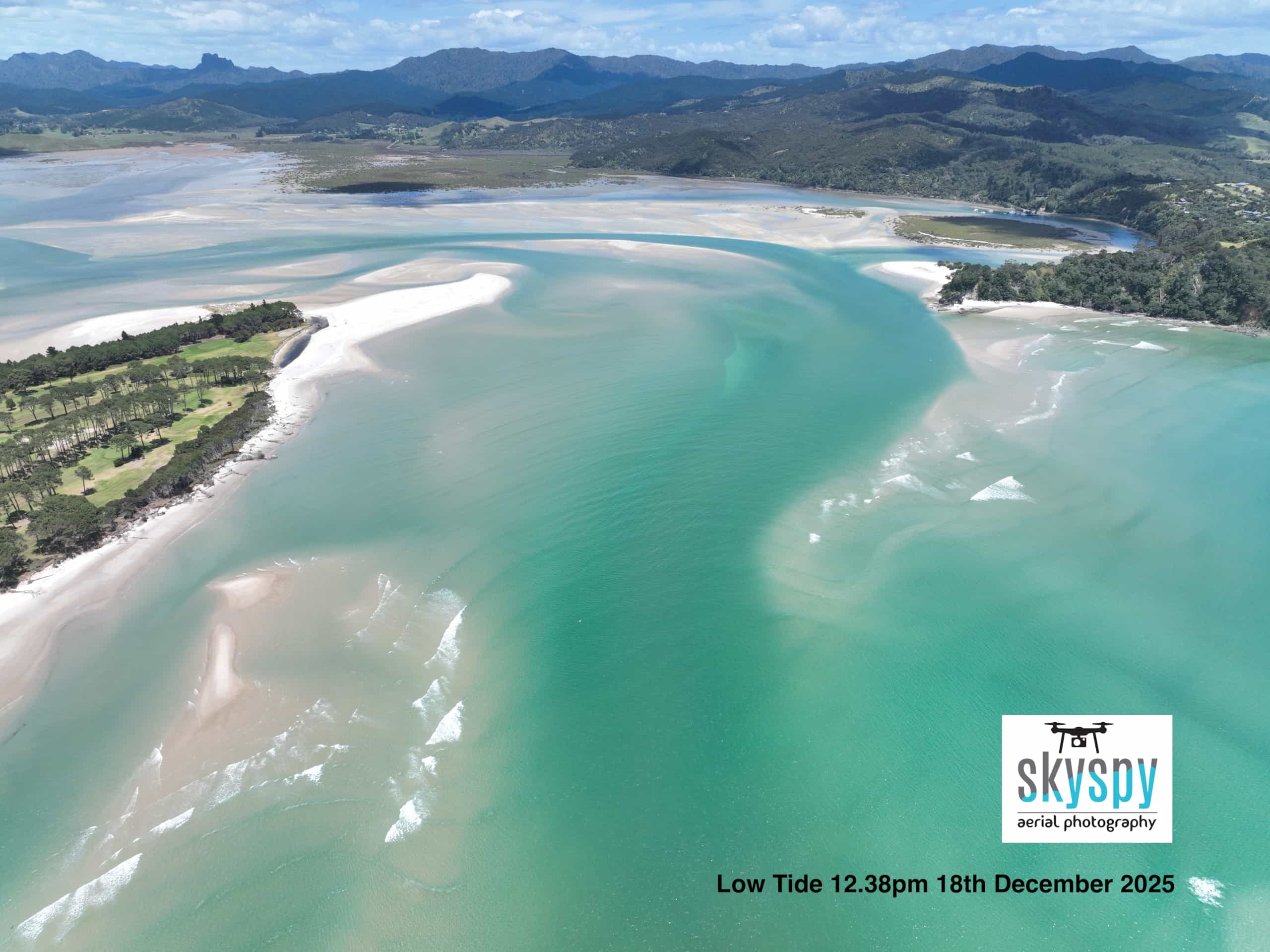 In no way is this photo to be used as a navigation tool. Assess the bar yourself and cross at your own risk. Don’t take risks, if in doubt, do not cross the bar. Wearing a legal fitting life jacket is a legal requirement when crossing the bar. The Whitianga Coastguard can be contacted on Channel 63 and the Now Weather report is on Channel 20.