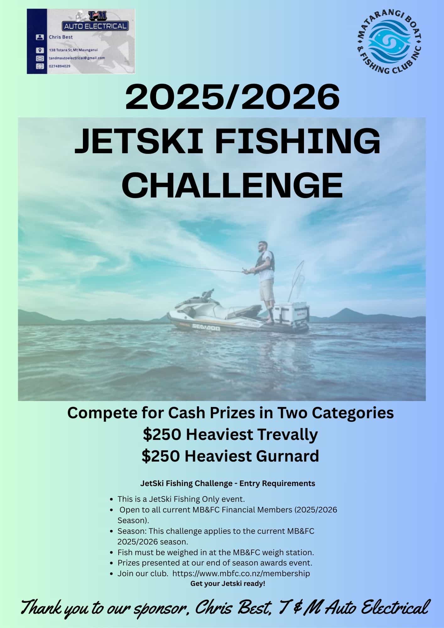 We extend a huge thank you to Chris Best from T & M Auto Electrical for generously sponsoring the 2025/2026 Jet Ski Fishing Challenge!